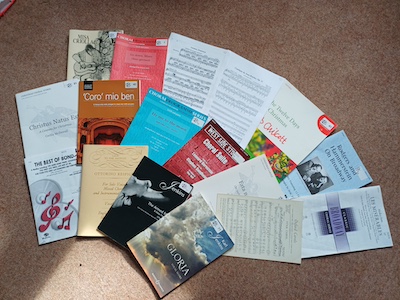Tony took over guardianship of the library from Judith Griffiths who joined the choir in 1967 when Gwyn Arch started conducting. Many of Gwyn’s fabulous arrangements are in the library, together with many choral pieces for SATB from composers including ABBA and Willcocks with Rutter, Chilcott and Bullard in between.